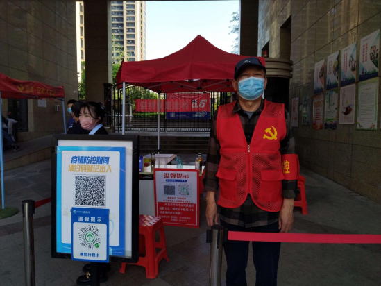 他说“离岗不离党、退休不褪色,为基层防疫一线做点事实!”从4月11日开始一直工作到4月底,他每天值班半天,地点在长淮街道信地社区居委会管辖下的藏龙阁藏龙阁小区。