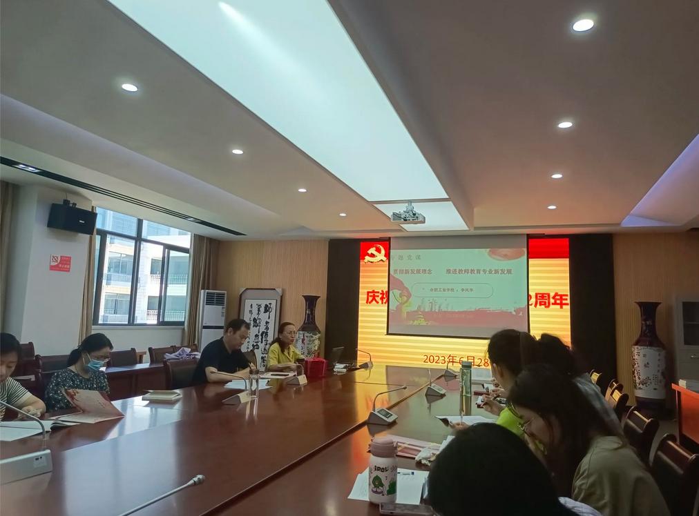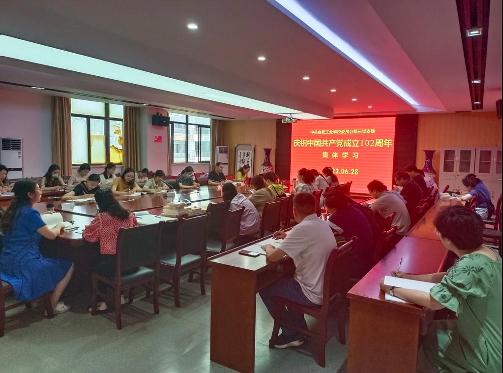 邓传国首先宣读了中共合肥工业学校委员会《关于组织开展庆祝中国共产党成立102周年系列活动的通知》,带领党员学习了《深入学习宣传贯彻习近平总书记在中央政治局第五次集体学习时重要讲话精神的工作方案》。宣传委员曾亚琴带领全体党员学习了《习近平新时代中国特色社会主义思想专题摘编》第18章:坚持不懈用新时代中国特色社会主义思想武装头脑、指导实践、推动工作。