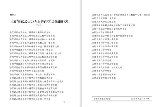 服饰与文化艺术学部所在的第三党支部,由学部43名教师党员组成,于2018年顺利通过基层党组织标准化建设验收,在2019年被合肥市教育局党委授予“先进党组织”称号,2019年入选基层党建工作“领航计划示范库”名单,2022年被校党委评为三星级党支部。通过支部全体党员上下一心、凝心聚力的奋斗,今年被市教育局党委评为五星级党支部,圆满完成星级支部创建任务。