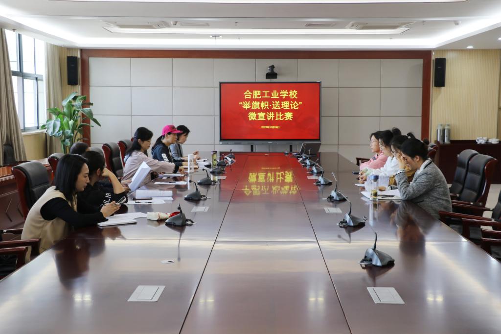 为深入学习贯彻习近平新时代中国特色社会主义思想,加强党的创新理论武装,激励引导广大教师深入学习党的先进理论,10月24日下午,合肥工业学校组织举办第二届“举旗帜 送理论”微宣讲比赛。