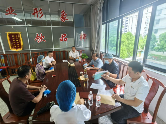 检查结束后,三个检查小组在食堂二楼会议室对食堂及超市检查结果进行反馈:对食堂、超市员工新学期的付出给予肯定,建议超市可参照合家福等大型超市的成熟做法,对临近质保期的商品推出优惠让利活动,此举既减少浪费,也惠及师生,同时企业文化的宣传内容也是校园意识形态安全的重要阵地,要加强宣传内容自查,营造积极健康的育人环境。
