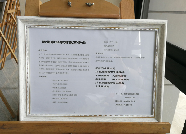 学期即将结束,为了向全校师生展示服饰学部学前教育专业同学们的学习成果,并迎接2018届新生的到来,合肥工业学校服饰与文化艺术学部于日前组织举办了学前专业学生优秀美术作品展。 参展的学生年级涵盖学前专业的1...