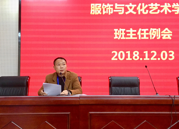 2018年12月3日下午,服饰与文化艺术学部召开全体班主任例会,学部主任李风华出席会议,副主任杨晓宁主持会议。 杨晓宁首先肯定了我部班主任的工作,接着围绕创建美丽学部的总体目标,提出了三项举措: 举措一:抓行为...
