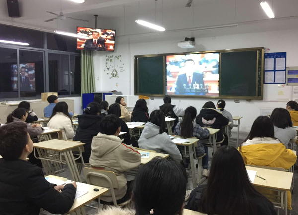 “风声雨声读书声声声入耳,国事家事天下事事事关心”当熟悉的《新闻联播》开始曲响起的时候,合肥工业学校服饰与文化艺术学部18级普专的同学已集中在教室里观看中央电视台每晚7:00准时开播的新闻联播栏目。 为了科学...