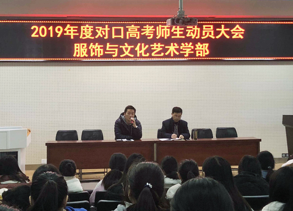 2019年3月5日下午15:20在223阶梯教室召开服饰学部2019年对口高考师生动员大会。会议上,服饰学部范侨主任对19届对口职教高考班的所有任课老师和学生进行鼓励,曹文华校长莅临现场针对本届学生的自身情况、教育现状、...
