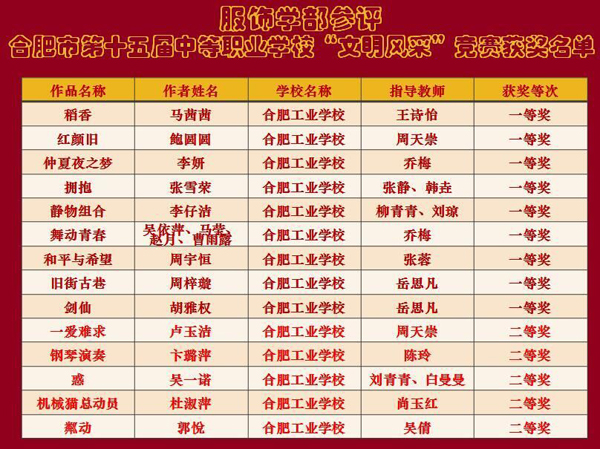 合肥工业学校服饰学部参评合肥市第十五届中等职业学校“文明风采”竞赛获奖名单