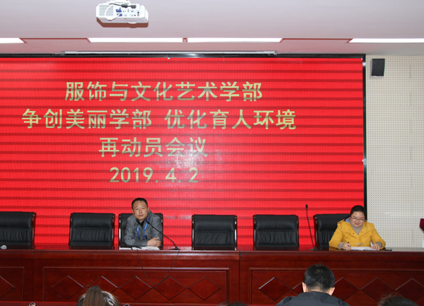 2019年4月2日中午12:30,合肥工业学校服饰与文化艺术学部在323阶梯教室召开“争创美丽学部,优化育人环境”再动员会议。会议由服饰部副主任杨晓宁主持召开,全体班主任老师和各班卫生委员、班长参会。 议分为三个部...