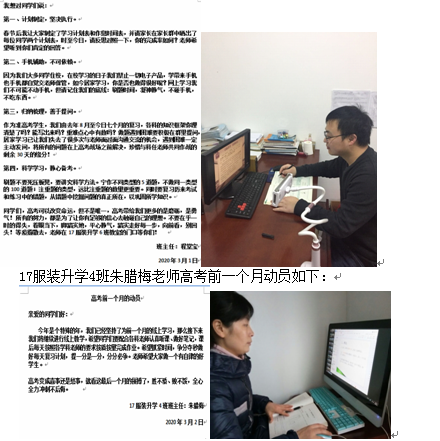 今天距离2020年职教高考预计倒计时30天了,因为一场新型冠状肺炎疫情,我们不能在教室里面对面共同冲刺高考,但我们同在空中课堂里相聚!我校服饰学部17级升学班班主任以一封信的形式给学生鼓劲加油,再次吹起冲锋的...