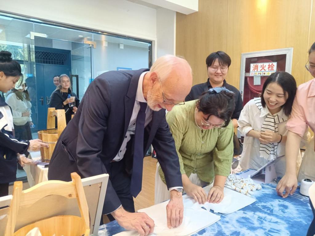 金秋十月,晴空万里,按照省教育厅外事处的统一安排,10月16日,德国诺特海姆第一职业学校师生代表团来到合肥工业学校开展访问交流。上午10点,在校领导的带领下,代表团一行抵达服饰学部创新创业基地参与师生互动交流活动。服饰学部的陶艺社、剪纸社、书法社、国画社、刺绣社、扎染社的师生热情接待。学部精心安排的活动引起了德方师生的浓厚兴趣,他们纷纷拿起毛笔、剪刀,在中方师生手把手的示范指导中,体验到了中国传统文...