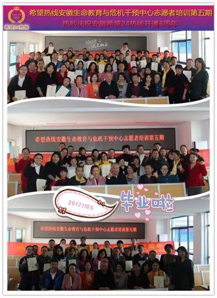11月4日,希望24热线安徽开通三周年暨志愿者培训班第五期在合肥五十中新校举行,合肥工业学校共安排三位教师参加了,服饰学部孙洁老师参加培训。 希望24热线总执行长马如军老师说,希望热线已发展五个年头,得到政府...