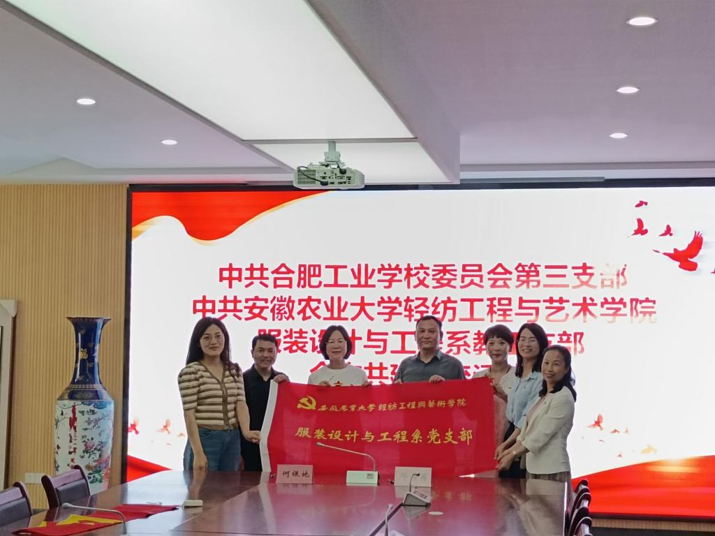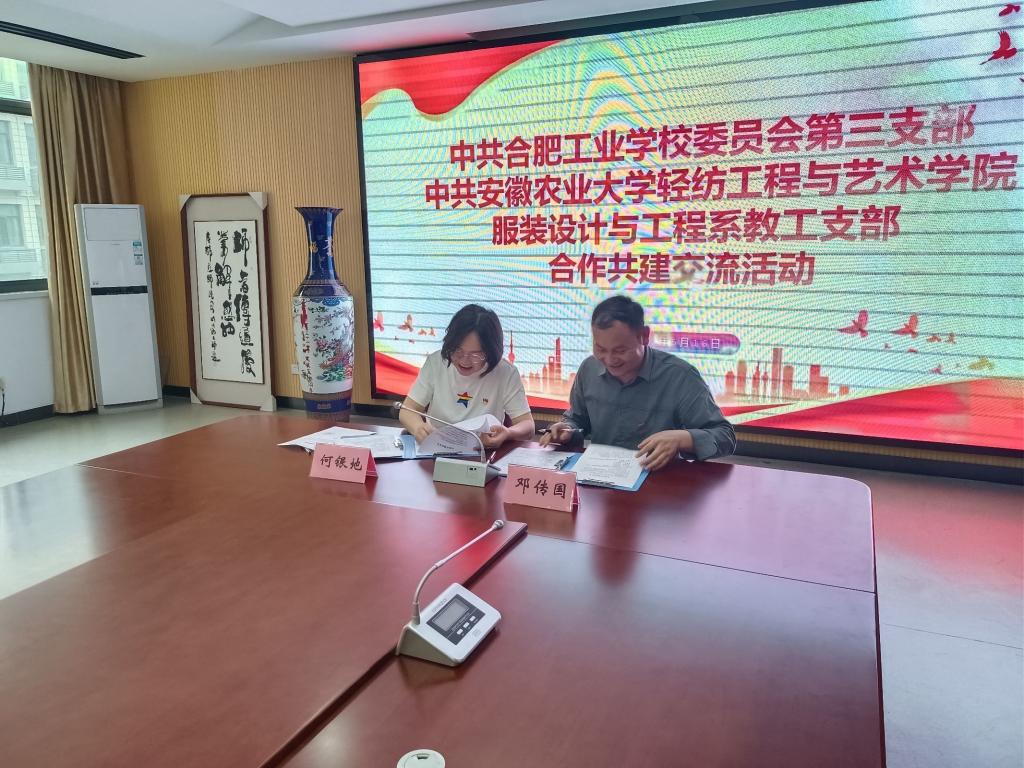 展评结束后,邓传国书记与何银地书记签署了中共合肥工业学校委员会第三支部与中共安徽农业大学轻纺工程与艺术学院服装设计与工程系教工支部合作共建协议,正式开启了支部共建活动。