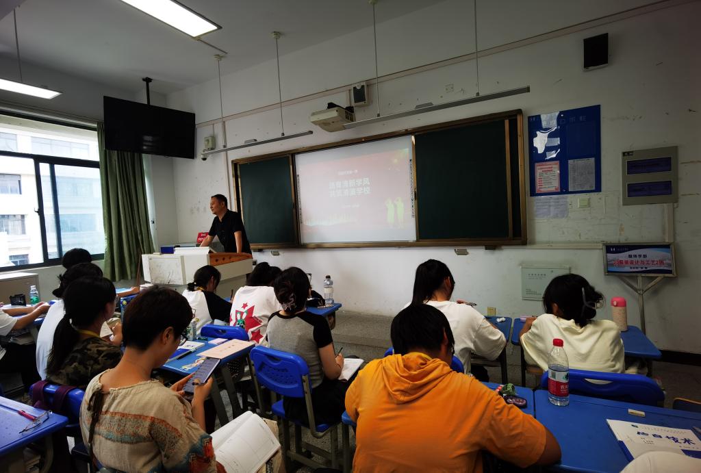 当天下午,校党委委员、副校长张宗权在服饰学部323阶梯教室为学生会干部及各班团支部书记进行培训。张校长从学校的“一训三风”开始,要求学生养成四种习惯、形成两种意识,并系统阐述了树立清新学风、共建清廉学校的重要意义。同时对于广大团员及学生干部从清廉的角度提出了自己的希冀与要求。
