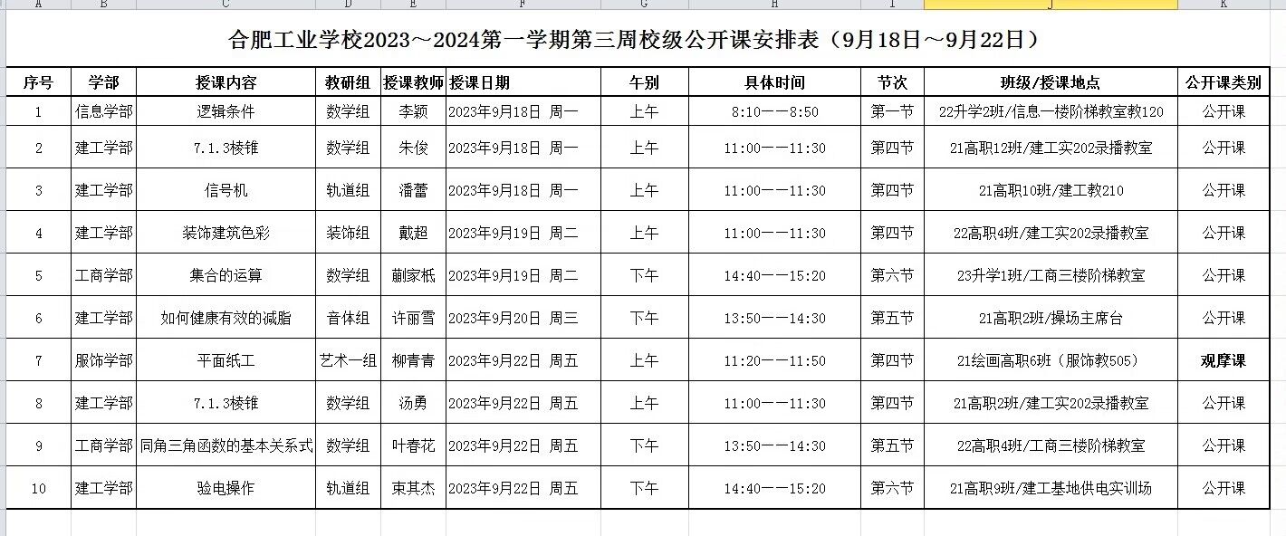2023-2024第一学期第三周校级公开课安排