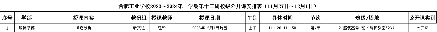 2023-2024第一学期第十二周校级公开课安排