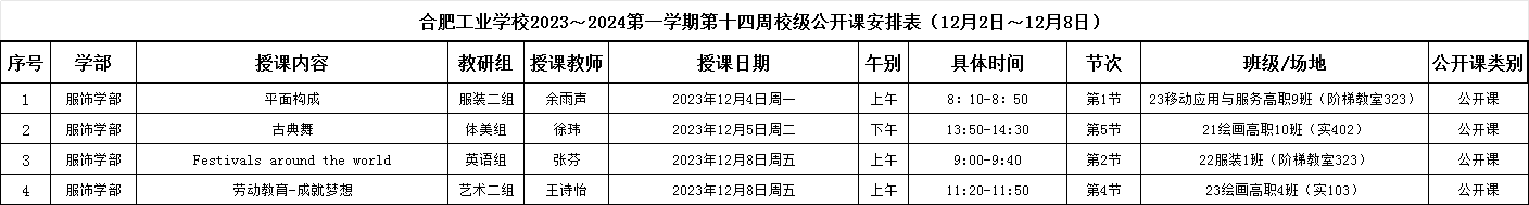 2023-2024第一学期第十四周校级公开课安排