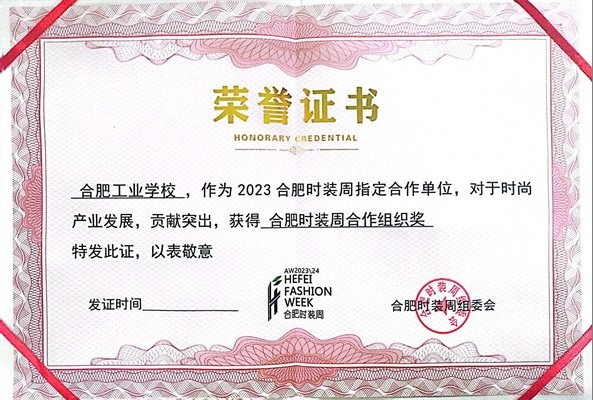 4月9日下午,时装周以压轴品牌秀闭幕。向为本届时装周作出贡献的各界力量表示感谢,闭幕式现场举行了隆重的颁奖仪式,我校荣获了合肥时装周合作组织奖。