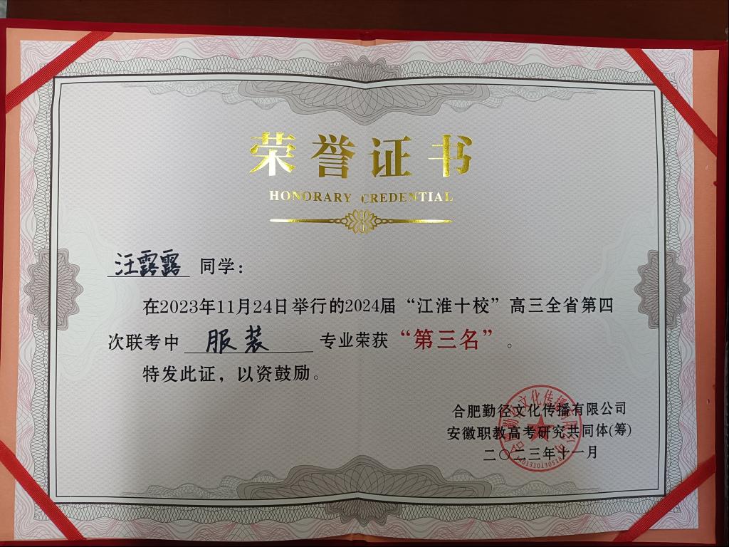 下午,应用型本科高校教师为机电专业、财会专业做了复习备考指导。离会前,联考组织单位为联考各专业前三名的学生颁发了荣誉证书和奖品,我校服饰与文化艺术学部汪露露同学在此次联考中取得了服装专业全省联考第三名的好成绩,消息传来,我校参会教师倍感振奋,信心倍增,纷纷表示要将好消息带给自己的学生,鼓励学生努力上进,为梦想奋力拼搏。