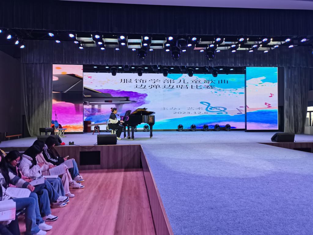 2023年12月6日下午2:00,服饰学部“儿童歌曲边弹边唱”比赛在学部五楼展演大厅如期举行。此次比赛面向服饰学部所有班级,同学们报名积极踊跃,共70多人参赛,场面甚是壮观。艺术二组教师组织学生现场就坐,安排比赛上场顺序,比赛有条不紊地进行。