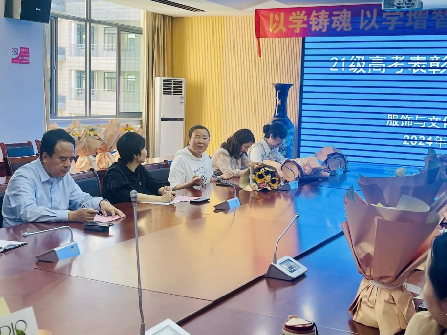 5月14日下午,服饰学部在308会议室隆重召开了21级职教高考表彰暨经验交流会议。校党委书记杨三龙、校党委委员、副校长董云霞、教务处副处长刘文、服饰学部相关负责人及全体职教高考班教师参加了本次会议。