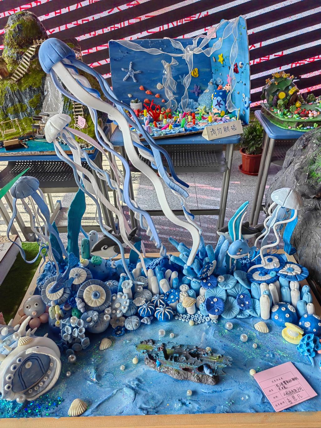 展览现场,一幅幅手工作品栩栩如生,色彩斑斓,吸引了众多师生驻足欣赏。这些作品涵盖了粘土纸工立体画等多种绘画形式,既有对传统艺术的致敬,也有对现代艺术的探索和创新。每一幅作品都凝聚了毕业生们的心血和汗水,是他们三年专业学习的成果展示。