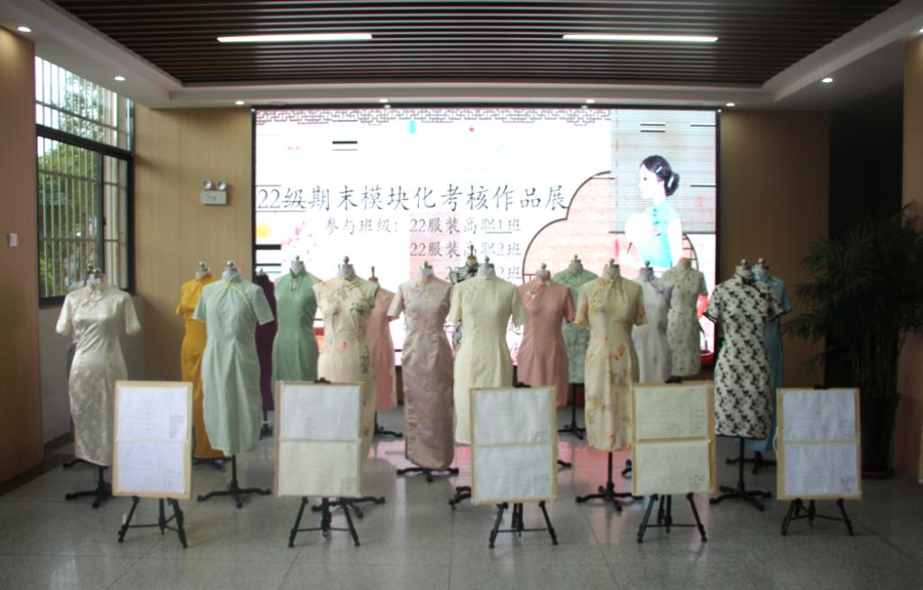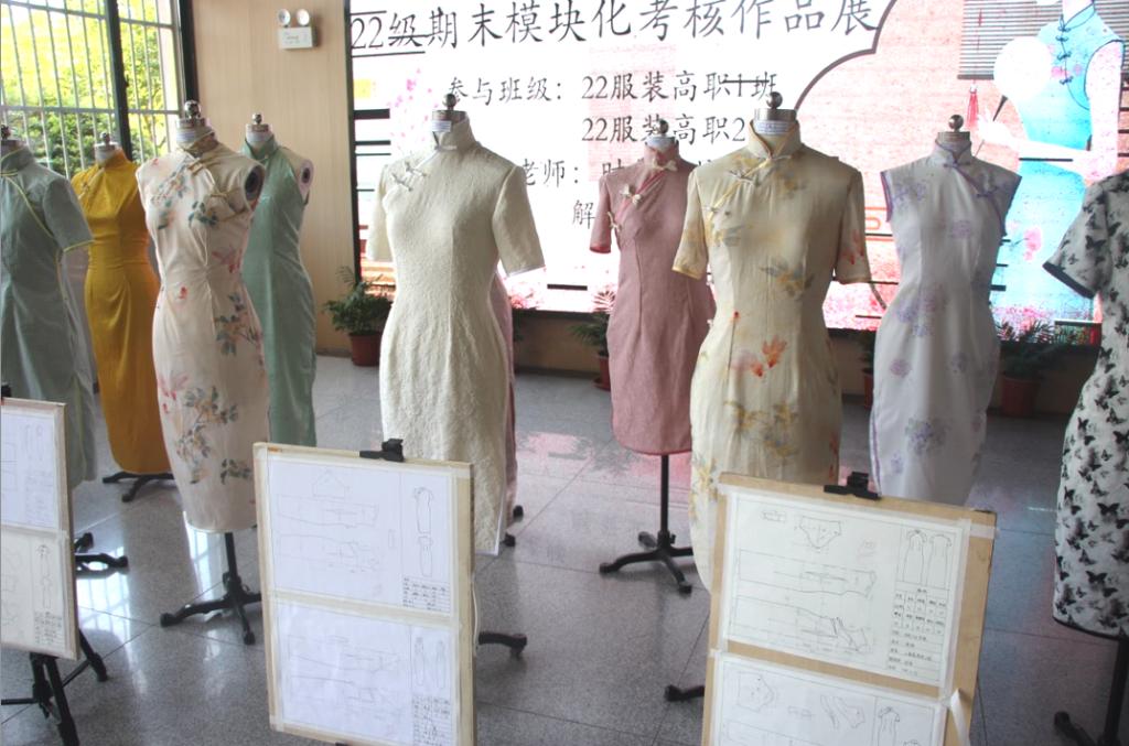 经过两年的学习,服装设计与工艺专业的学生对服装设计有了深入的了解,在服装设计与工艺上的技能也更加娴熟了。6月18日,22服装设计高职1班,22服装设计高职2班,22服装2班三个班级联合开展了模块化考核旗袍作品展。模块化考核是针对服装专业教学评价改革措施之一,学生利用已掌握技能,自行选购面料,设计制作出实用的服装,旨在考查学生“设计---制版---缝制”这个完整的服装制作技能的掌握情况。
