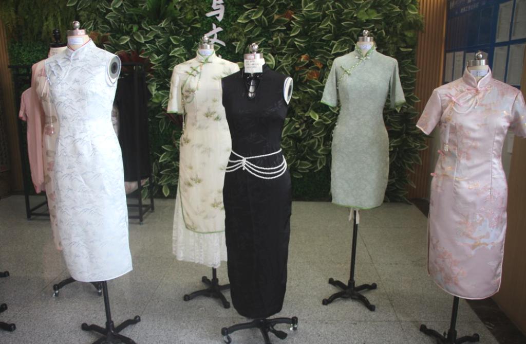 学生利用课余时间,在老师的指导下精心布展,一件件精美绝伦的旗袍映入眼帘,仿佛在诉说着每一位设计者的独特故事与创意灵感。这些旗袍作品,或华丽绚烂,或清新淡雅,或复古优雅,或时尚前卫。每一处针线、每一片布料、每一个细节,都凝聚着设计者的心血与才华。从传统的样式到创新的设计,从经典的色彩搭配到大胆的突破尝试,每一件作品都展现出了学生对于旗袍这一传统服饰的深刻理解与无限热爱。