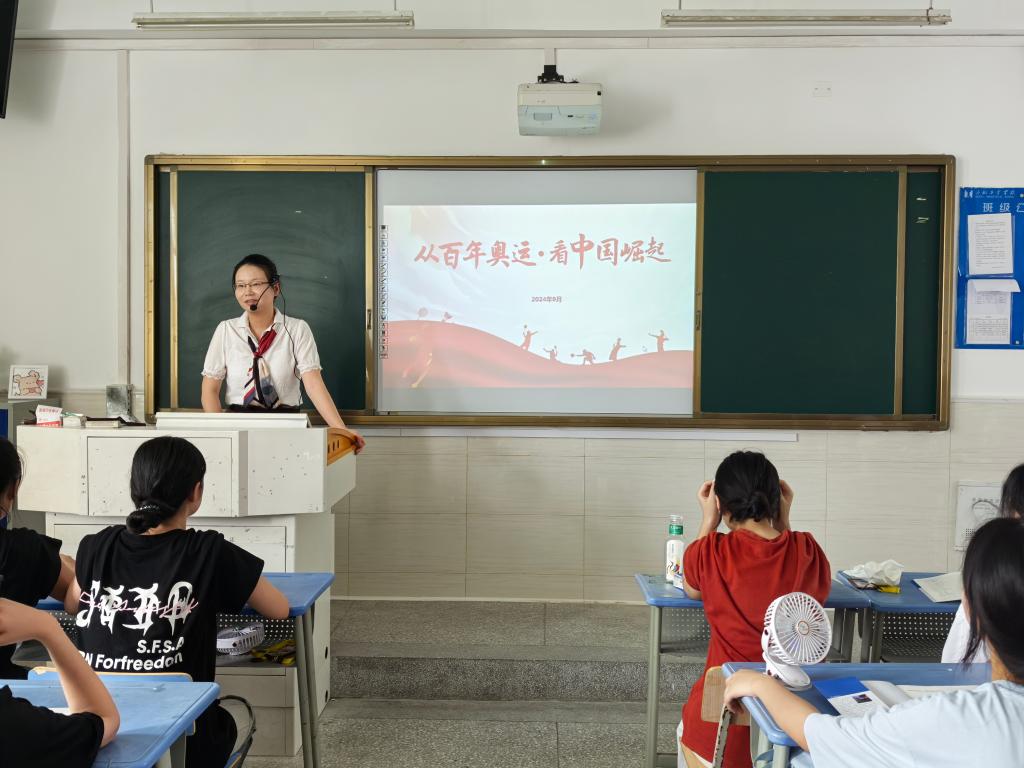 2024年9月2日,我校传统的德育教育品牌思政第一课以“从百年奥运看中国崛起”为主题,在服饰学部周天崇老师的课堂上拉开帷幕。