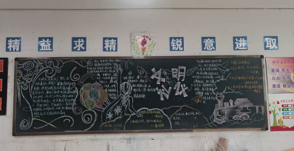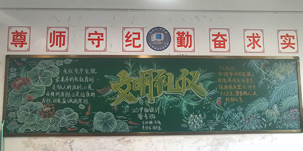 服饰学部4月板报主题为《文明礼仪伴我行》,各班级黑板报内容紧扣主题,传递积极正能量,融时代性、知识性、教育性为一体;版面整洁大方、美观有序;同学们既构思新颖,又贴近现实,并结合本班特点,进行深入广泛宣传。同时,格外注重创意,发挥专业能力,粉笔、颜料、喷绘让人眼前一亮,人物、景致、艺术字让人目不暇接。