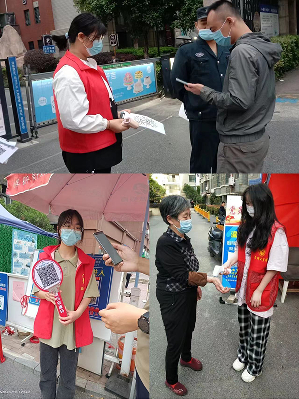 当前疫情防控形势仍旧严峻,小区大门是每日人员流动较为密集的地方。21服装高考2班利用课余时间号召班级同学分别在各自的社区加入志愿者服务活动,协助社区工作人员在社区门口做好防疫检查工作,把好社区出入关。