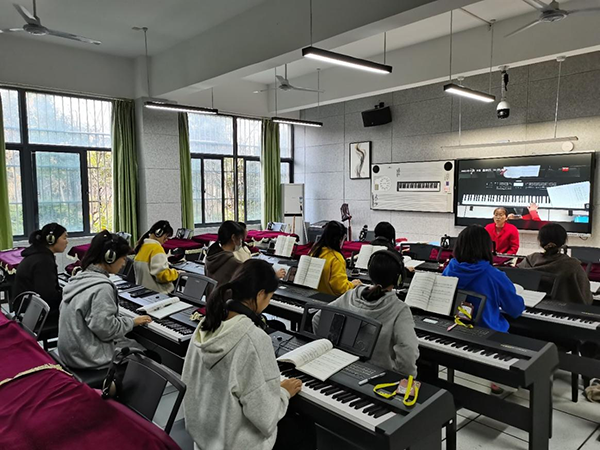 综艺社团成立于2021年9月,弹唱学习由张正霞老师指导,在这里无论是零基础学习,还是技能提升,在硬件设施完备的一楼琴房,每位成员都能有自己的收获。