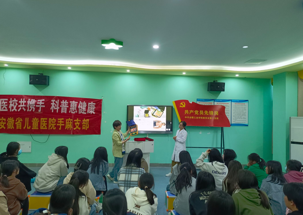 2023年4月26日21绘画普专3班团支部第三党支部的带领下参与四月的主题日活动——医校共携手,科普惠健康”,我们也将此作为团支部主题特色活动。温暖的102教室里,来自安徽省儿童医院手麻支部的医护人员身着白大褂,结合ppt为我们带来一场生动的急救培训课。