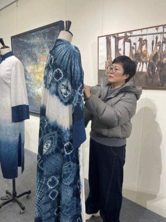 12月5日,安徽省职业院校美术成果展在合肥久留米友好美术馆开展。本次展览集中展示了省内中高职院校美术专业师生的118件精品力作,笔墨丹青间尽显皖山皖水的人文底蕴与青年学子的创意活力。合肥工业学校服饰与文化艺术学部在韩彦彦副主任与蒋欣怡老师的带领下,携师生共同创作的扎染系列服装作品精彩亮相,为本次展览增添了一抹独特的艺术亮色。