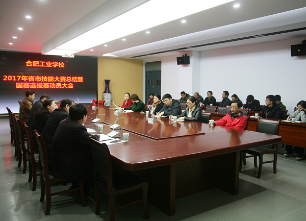 3月20日下午,合肥工业学校2017年省市技能大赛总结会暨国赛选拔赛动员会在服饰学部三楼会议室召开。学校党委书记、校长王靖,分管教学负责人曹文华,实训处负责人周经春,各学部分管大赛工作负责人以及2017年省市技能大赛指导老师参加了会议,会议由曹文华主持。