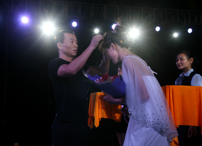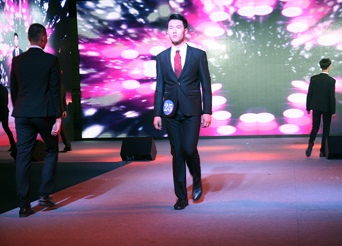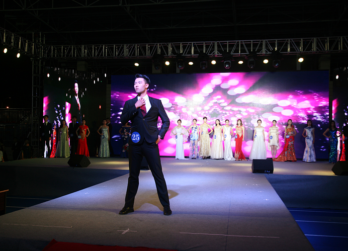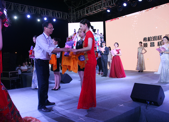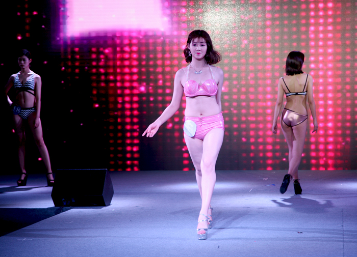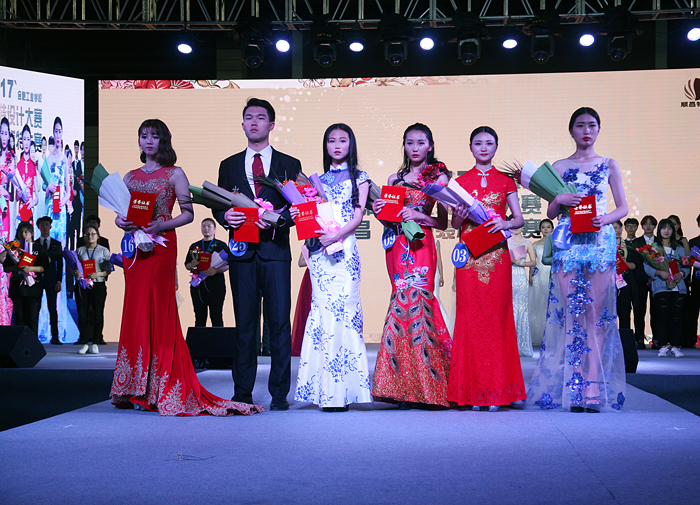 “希柏润杯”服装设计大赛之后进行了“顺昌杯”服装模特大赛。大屏幕上首先呈现模特个人信息,经过泳装展示、生活装展示、礼服展示三个环节。选手们不遗余力地通过舞台表现向评委与现场观众展示自己的朝气与活力、自信与优雅。