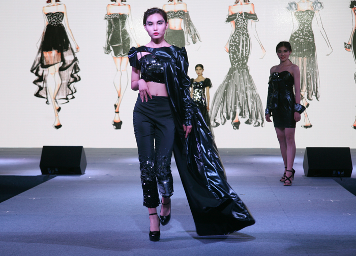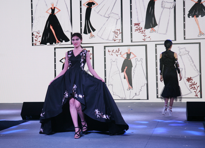 本届“希柏润杯”服装设计大赛设计主题为“肆•放”,意为“肆意绽放”, 体现设计者青春、独立的设计风格。伴随着摇曳、时尚的灯光,模特们依次将13个不同风格的设计系列,以服装发布会的形式完美呈现给现场的师生。作品《彩色的黑》色彩大胆流畅、《魅影》造型流畅优雅、《冷韵幽香》完美融合古典刺绣……每个作品都被设计师们赋予了设计灵魂,在舞台上熠熠生辉。