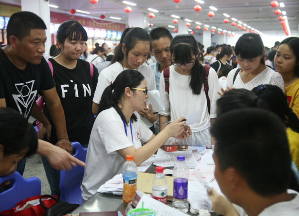 盛夏金秋之交的美丽校园,歌声嘹亮,彩旗飞扬。8月25日至26日,合肥工业学校迎来2017级新生开学报到的第一天。为了迎接“新家人”的到来,合肥工业学校服饰学部的各位老师按照事先工作部署,提前到达迎新地点,热情洋溢地期待着新生和家长的到来。