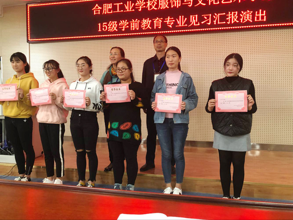 15级学前教育专业3、4、5班共105人完成一周见习活动后,将在幼儿园里所见所闻编排成“儿童舞蹈、儿童剧、儿童早操、PPT汇报展示”等13个多样丰富的节目,可谓精彩纷呈。经过近两个小时的表演展示和激烈角逐,15学前5班孙雪雪小组的舞蹈“不怕不怕”等多个节目崭露头角。最后学部领导为见习表现优秀的学生、及表演优秀的学生颁发的奖状。