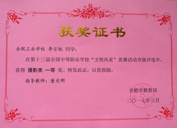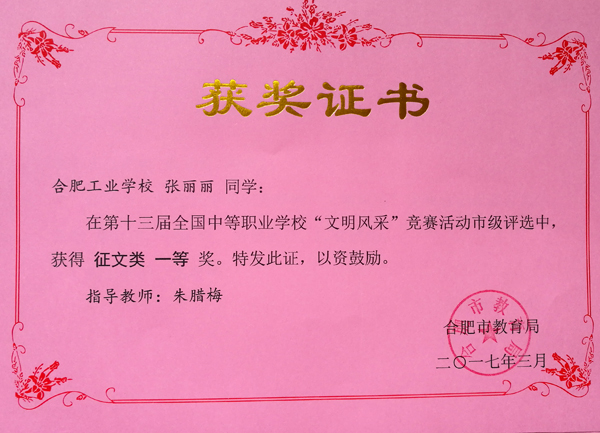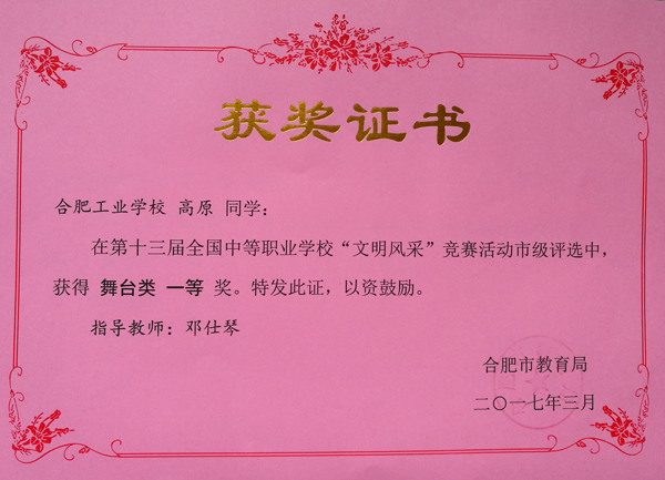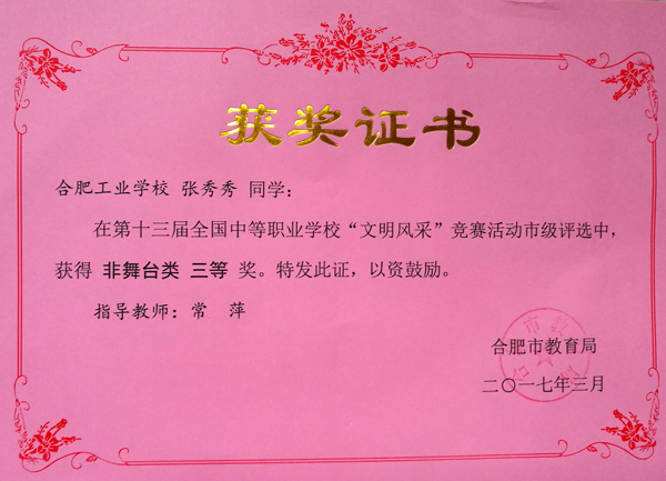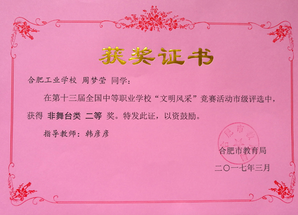 热烈祝贺合肥工业学校服饰与文化艺术学部十位学生在第十三届全国中等职业学校“文明风采”竞赛活动中荣获佳绩