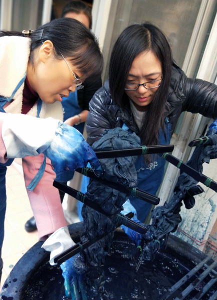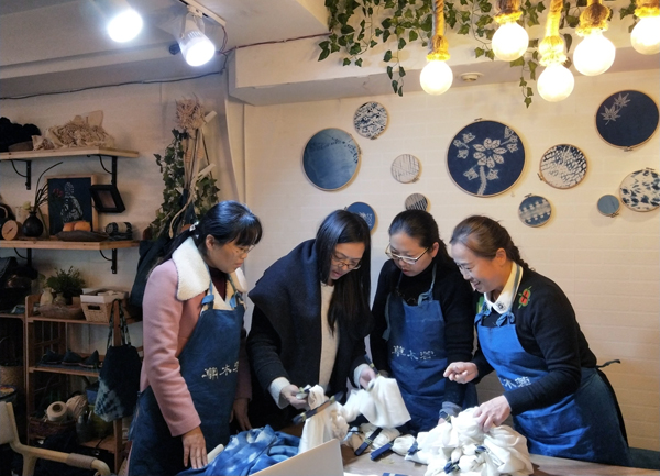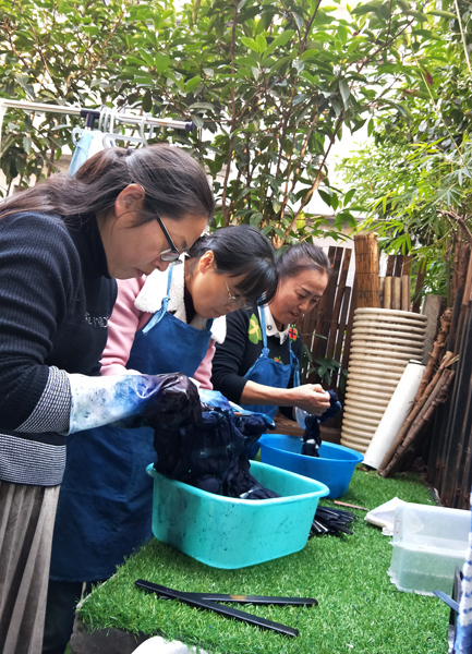 合肥工业学校自开展教学质量提升专项工作以来,校领导对于教师专业能力的提升给予了高度的重视和支持。为了加强项目组的质量提升,扩大项目组成员的眼界,丰富组员的学习内容,服饰学部美术绘画专业项目组于2017年11月底组织了组长张正霞,组员李红,熊越辰,董光明一来到了上海沐蓉文化创意公司进行了为期三天的培训。培训中各成员系统地学习了扎染的各种技能和方法。学员们了解了扎染这种非遗文化的传承历史,亲手学习了扎染的叠扎法,麻花扎结法,夹染法,卷扎法,捆扎法,包物法,平缝法等。同时在老师手把手地悉心指导下,亲手在染缸里浸染,创作了一幅幅迥然不同的独创的个人作品。李红老师尝试着把美术绘画的技巧融入到古老的扎染技术中,取得了意想不到的效果。自然界的艺术总是相通的。