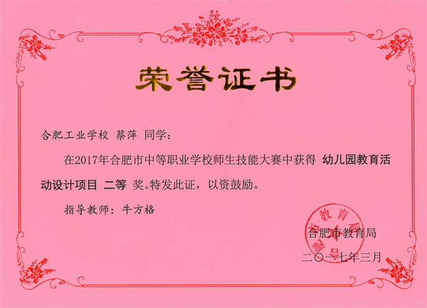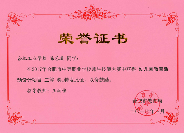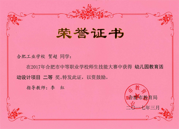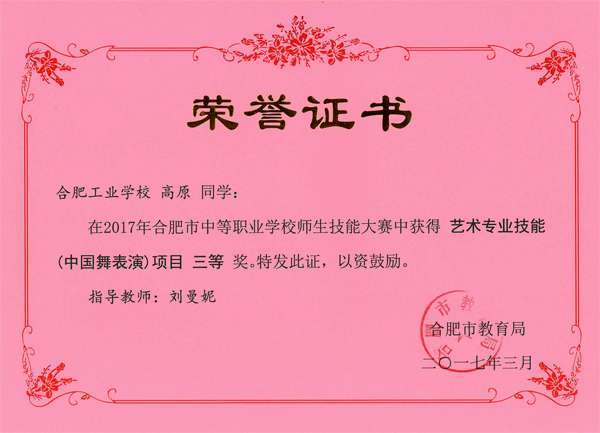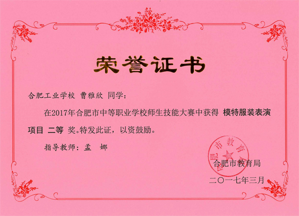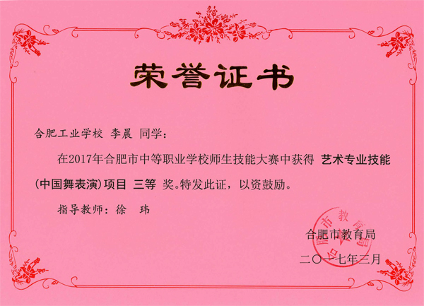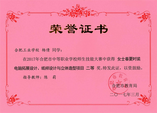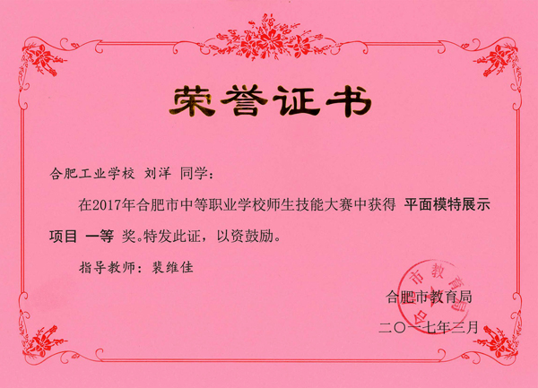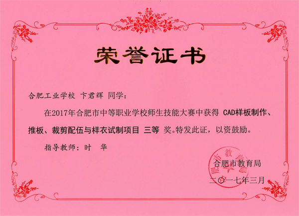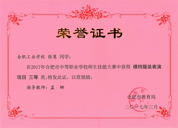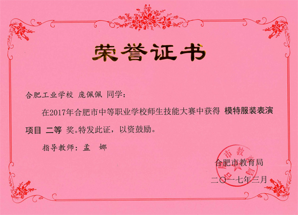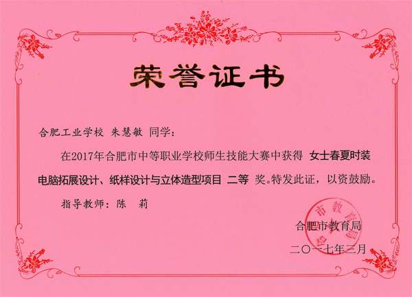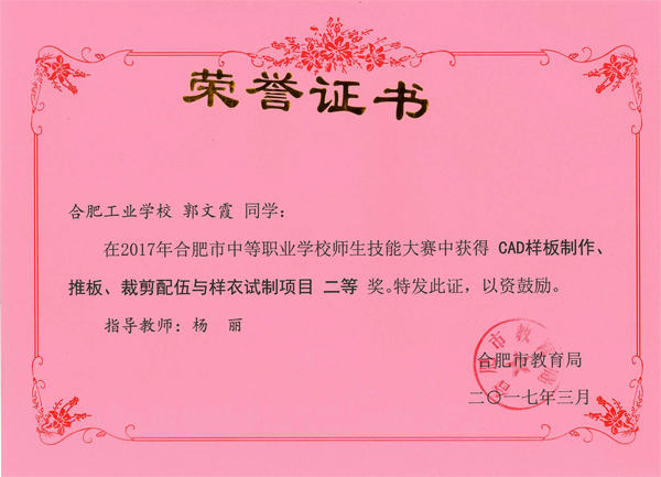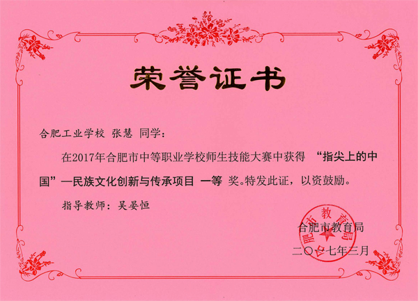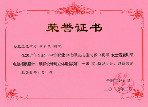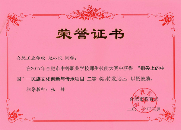 热烈祝贺服饰学部时华、吴倩、吴晏恒、费维佳等十五位老师在2017年合肥市中等职业学校师生技能大赛中指导学生荣获佳绩