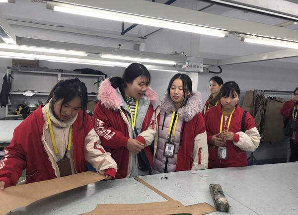 此次实践活动是根据服装设计与工艺现代学徒制项目的计划开展的,全体学生由朱腊梅班主任带队,还有鲁星平、姚俭、韩彦彦三位专业课教师一起下企业锻炼提升。学生在企业实践期间分成两组,企业安排两名优秀企业指导教师进行现场指导讲解,从工艺流程、制版技术、先进设备、市场前沿、企业文化等方面给予传授,体现师傅带徒弟技能培养模式,学生学到了在学校课堂上学不到的知识。