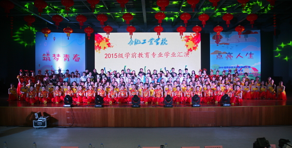 笑语欢声,承载毕业号角,又迎来一年毕业季。在院领导的精心安排与2015级毕业生的全力准备下,服饰与文化艺术学部于2018年元月18日上午9时,在图书馆三楼展演大厅隆重举办了合肥工业学校15级学前教育专业学业汇演——“筑梦青春 点亮人生”,本次汇演邀请了:合肥工业学校党委书记、校长王靖等学校领导,以及合肥部分幼儿园园长,15级、16级学前教育全体学生观看了此次演出。