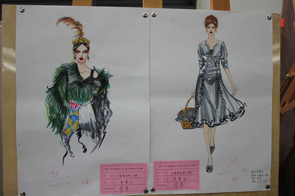 作业展参与班级包括2015级所有服装专业班级,在班级甄选推荐出的优秀服装设计效果图中评选出一二三等奖和优秀奖若干,由学部颁发了奖状和奖品。