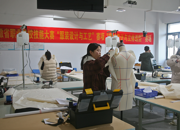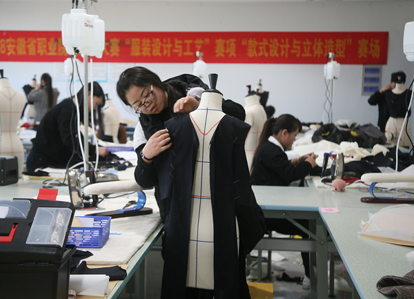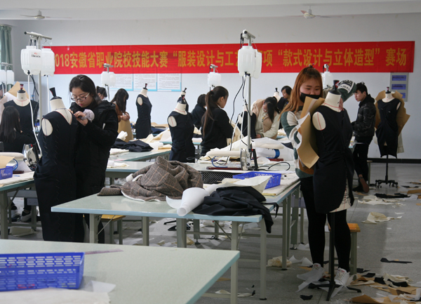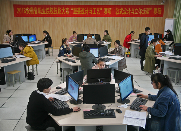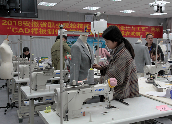 2018年安徽省职业院校技能大赛(中职组)近日在各赛点拉开了帷幕,本次大赛是由安徽省教育厅、安徽省经济与信息化委员会、安徽省人力资源和社会保障厅联合主办,“服装设计与工艺”赛项由合肥工业学校承办。“服装设计与工艺”赛项包括:女士春夏时装电脑款式拓展设计,纸样设计与立体造型,女士春夏成衣CAD结构设计、版型制作、推板,剪裁配伍与样衣试制以及理论线上测试,每位选手必须在两个整天中依次完成这五个模块,这竞技不仅是技能的大比拼,更是体力和勇气的大较量。