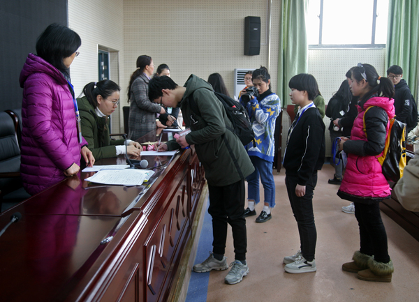 3月9日上午参赛选手陆续报到。截至下午2:00来自全省各地的12个代表队,共计51名参赛选手全部按时报到。下午3:00召开领队会议,之后安排师生参观各个赛场。