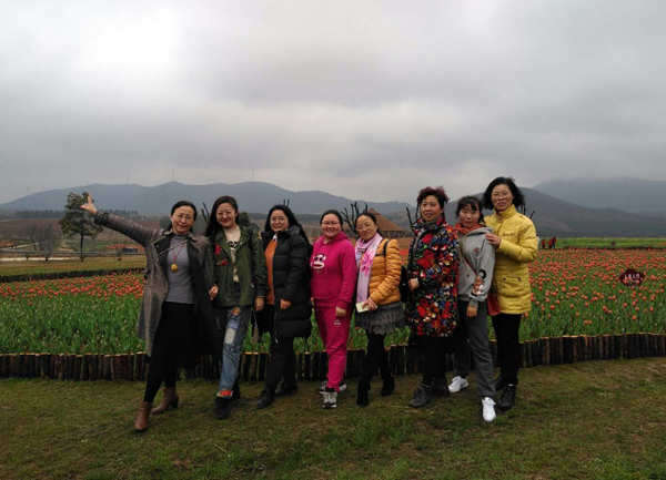 3月18日早晨八点半,大家告别了流连忘返的露营基地,三辆大巴带着133人继续出发至大家心驰神往的巢湖三瓜公社。在这一个小小的村里,有书屋、炒货坊、腊味坊,还有客栈、民居,有吃的、有玩的,有小资的、有文艺的,还有发呆的,吸引女神们纷纷驻足。都说女人如花,女神们的最爱当然是花了,这次活动的最后一项安排是国家级4A景区的郁金香高地。春日细雨之下的郁金香,五颜六色,争奇斗艳,沾上细细雨滴,更是犹如梨花带雨的美女。工业学校的美女教师们,徜徉花海中,流连其间,赏花拍照,尽享田园诗意生活,好不惬意。