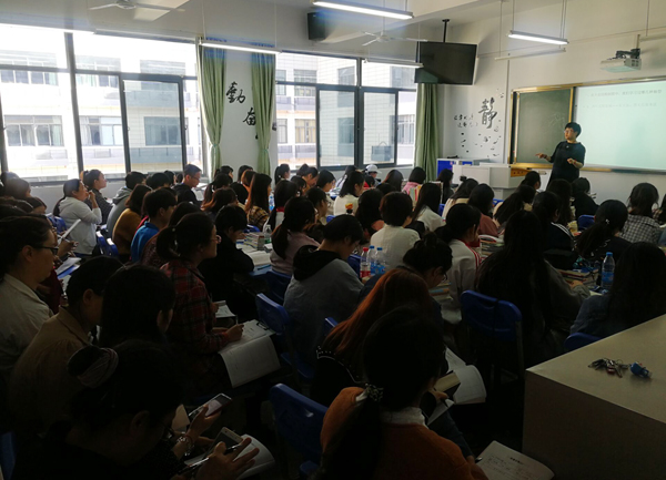 杨丽老师临近预产期仍坚持完成本学期常规教研公开课,爱岗敬业精神令人敬佩,在授课活动过程中她以饱满的热情去带动学生,引导学生在愉快、宽松的氛围中学习。课上学生在认真的听讲,积极地发表自己的看法,热情的参与到练习中去;前来聆听的四十多位教师边听边记,课堂学习氛围活跃,受到师生的一致好评。