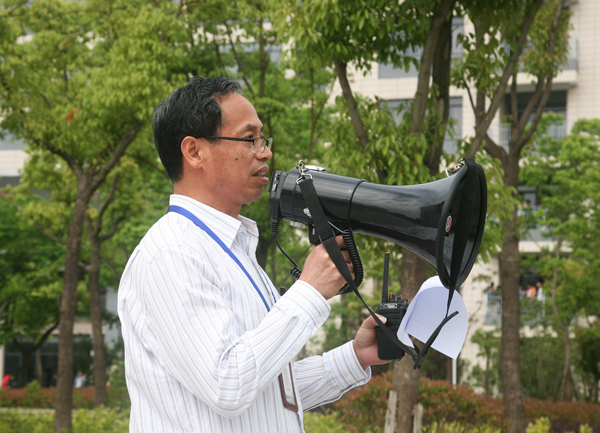 9点40分,当演练现场总指挥通过广播下达“学部发现火情”立即疏散指令后,一阵急促的警报声正式拉开了疏散演练活动的帷幕。班主任迅速赶到班级与当堂课任教老师和班干部一道组织、指导学生有序撤离到学校操场的安全地带,学部其他教职工也随同学生一起撤离。撤离至指定地点后,各班随即清点人数,并由班长向现场总指挥报告人数,演练共用时约3分钟,1700多名师生全部安全疏散完毕,整个过程紧张有序、实用性强,收到了预期效果。