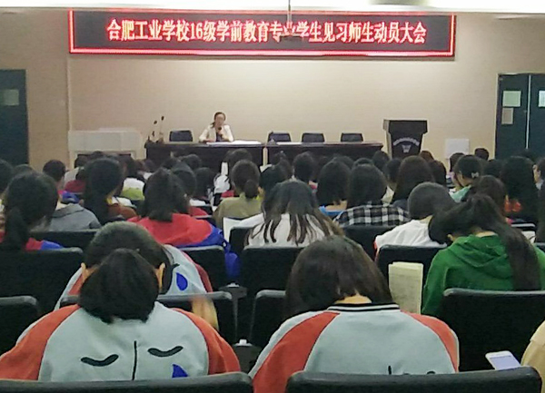 2018年5月25日上午10:00在合肥工业学校服饰与文化艺术学部223会议室由服饰与文化艺术学部李风华副主任主持召开了16学前教育专业学生见习师生动员大会。16级学前教育专业首批外出见习的学生及带队老师参加了此次会议。