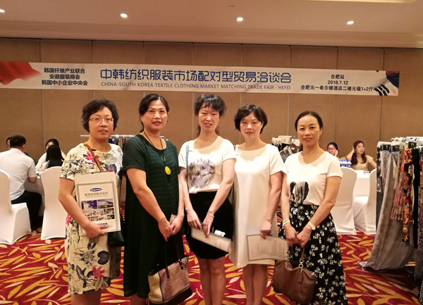 7月12日,“中韩纺织服装市场配对型贸易洽谈会”在合肥元一希尔顿隆重举行。本次会议由安徽省服装商会、韩国纤维产业联合会联合举办,上海厚之商务咨询有限公司承办。受邀的13家韩国企业在会场展示了近千余种面料,充分展示企业的实力与诚意。
